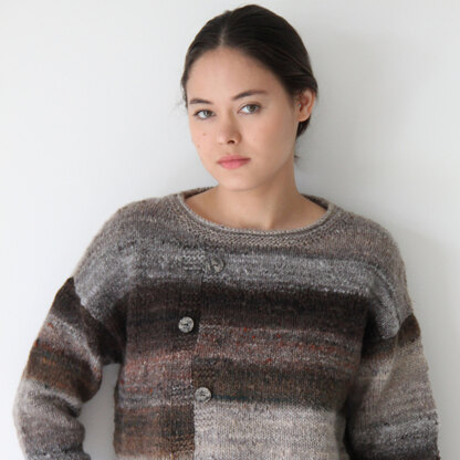 Noro Y1165 Pullover is a lovely women’s sweater knit in Miyabi with textures and buttons adorning the front. The sweater features a crew neckline and dropped shoulders. The pullover is knit flat in pieces from the bottom up and then seamed. Miyabi is the Japanese word for elegant, and Noro Miyabi certainly lives up to its name! Noro’s beautiful long color repeats and the luxury of cashmere make this yarn a match made in heaven!