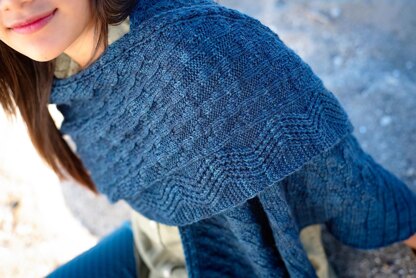 Northwest Passage is a riff on the blanket pattern Born at Sea. In Northwest Passage, I rework the stitch patterns from Born at Sea as a long, triangular shawl, worked from the right tip to the wide left edge in sport/heavy fingering weight yarn. Northwest Passage uses 2 stitch cables and a texture pattern of knit and purl stitches; instructions for working 2 stitch cables without a cable needle are provided in the pattern notes. To make Northwest Passage, you will need to know how to knit, purl, work yarn overs and k2tog decreases, and how to read charts. Pattern instructions are charted only.