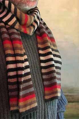 Long double-thick scarf in stockinette stitch with a symmetrical stripe pattern, for hours of beautifully mindless knitting.