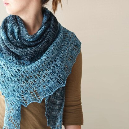 Worked from tip to edge, the asymmetrical shawl will hug your shoulders.