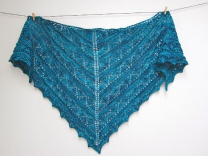 This shawl was designed for an easy, straightforward knit while on a road trip holiday to Wales. It is an ideal choice for beginner lace knitters wishing to tackle their first lace shawl project or for a quick last minute gift.