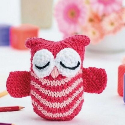 Use a combination of increases and decreases and simple stripes to make this little sleepy owl. Designed by Amanda Berry @fluffandfuzz, Olive is knitted in acrylic aran yarns on single pointed needles (not in the round). For beginners and above, other techniques used include casting on and off, knits, purls, knitting stripes, and seaming to finish.