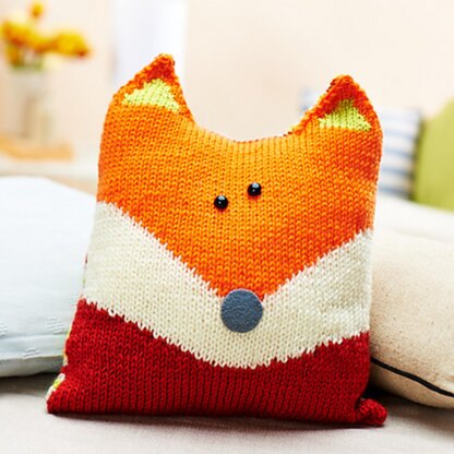 This brightly coloured fox is sure to cheer up your sofa. The front of the cushion is a foxy face, and the back is in bright knitted stripes. Designed by Amanda Berry @fluffandfuzz, the fox is knitted flat on single pointed needles (not in the round). The pattern incorporates intarsia colour-work, and both a chart and written instructions for the colour work are included in the pattern. For confident beginners and above, other techniques used include casting on and off, knits, purls, increases and decreases, and seaming to finish