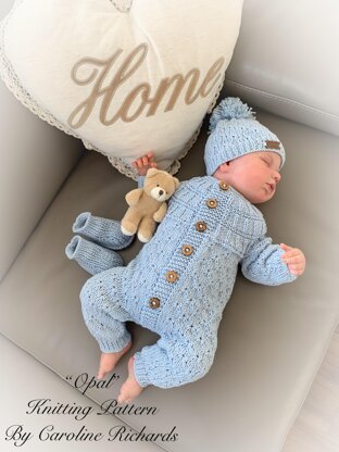A modern design baby romper, knitted from the top down on single pointed needles.
