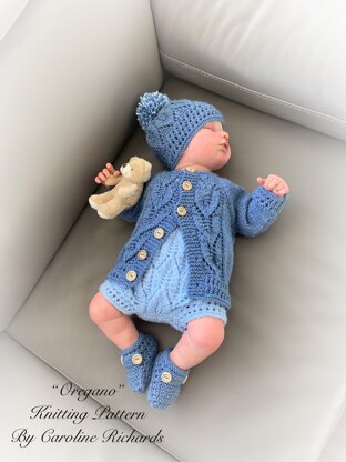 This pattern provides the instructions to make the cardigan, dungarees, bobble hat, and boots. The cardigan and hat are knitted flat from the top down making them mostly seamless, just the underarms to sew up and no need to pick up any stitches. The dungarees are made from the bottom up in one piece and the straps can be easily adjusted by using the existing holes in the bodice to button up. As with all my designs, the pattern is written with line-by-line instructions so very easy to follow and the entire set is knitted using straight needles.