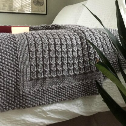 I used Lion Brand Hometown in the color “Dallas Grey” for the blanket shown in the photos. The pattern will also work well with Lion Brand Thick & Quick.