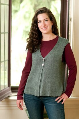 Simple and elegant. The swingy A-line shape, two button closure and back vent are elements that add appeal. For simple, clean, straightforward construction and finishing, the center bands are knit as you work the fronts and the shoulders are joined with a 3-needle bind off.