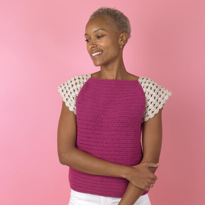 Paintbox Yarn Charming Cap Sleeve Top is a cute and colorful tee that's easy to pair with shorts, skirts, and jeans all spring and summer. With an incredible range of colors and smooth cotton fiber, Paintbox Yarn Cotton DK is a crafter favorite that's stashworthy for all kinds of projects from garments to accessories or home décor. The Charming Cap Sleeve Top is crocheted flat in pieces from the top down and seamed, with a contrasting color on the sleeves offering great customization options! Choose your favorite shades of Cotton DK and get started on your new go-to top!