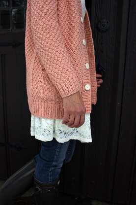 On those days when it looks like spring but still feels like winter, Paloma is warm and cozy, but delicate and feminine and perfect for warming up weather. I've been dying for a deep, slouchy cardigan I can throw over a spring dress or delicate top and this is it. The color is just gorgeous, and a little bit of a surprise in such a heavy texture. I love how bulky yarn takes this motif though, and I've added a few details that play on the double seed, single ribs that stand out from the stitches and more pronounced seams along the sides. More delicate seams at the shoulder keep the sweater feeling light and flattering, and the transition between ribbing and the body is kind of cool. Plus, pockets! Who does not love pockets!? Paloma is pictured in O-Wool's Legacy, a 100% organic merino that's light and cozy and knitting with it goes super fast. Similar yarn substitutes are suggested. Always check your gauge.