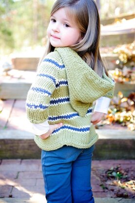 This sweater knits up amazingly fast thanks to the larger gauge. Bulky yarn is worked in a looser fabric to make a cozy layering piece in winter or even milder weather. It’s worked seamlessly, top-down, making it easy to adjust lengthwise for the perfect fit. Stitches for hood are picked up along neckline and worked up after garment. Options are included for no hood, 3/4 sleeves or long sleeves, and a-line or straight down body shaping.
