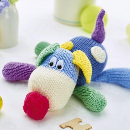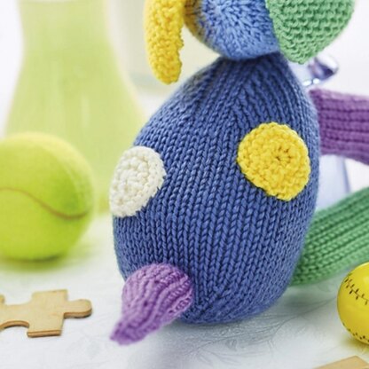 Patch is a loveable companion with a pompom nose. Use different colours for each piece to make a rainbow patchwork puppy. Designed by Amanda Berry @fluffandfuzz, the puppy is knitted in acrylic DK yarns on single pointed needles (not in the round). For confident beginners and above, other techniques used include casting on and off, knits, purls, increases and decreases, and seaming to finish.
