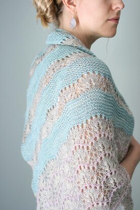 Pennae (Latin for feathers) is a light and feathery asymmetrical triangular shawl that utilizes the beauty of Anzula's new silk and wool blend yarn. Pennae starts out with just one stitch and grows from there, with a simple solid section transitioning into lace stripes, after which a lovely plume of lace finishes the shawl. The lace is an uncomplicated pattern based on Barbara Walker’s Porcupine Stitch – a chart and written directions have both been provided for easy execution. Have fun picking colors -- either bold contrast or tone-on-tone, two colors or three -- whatever you choose will make for a pretty multi-seasonal piece.