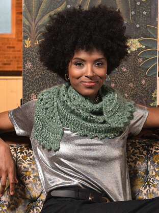 Subtle shimmer and sophisticated lace elevate this top-down crescent shawl into a special occasion-worthy project. Soft and warm, this accessory has a