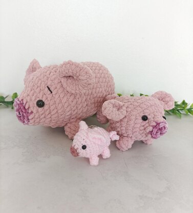 This cute piggy is worked in chunky chenille yarn so is super quick to work up! It comes in two sizes small and large, the small one can also be made with dk / weight 3 yarn to make a little key chain.
