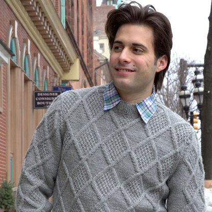 Plymouth Yarn Men’s Moss Diamond Pullover is a
