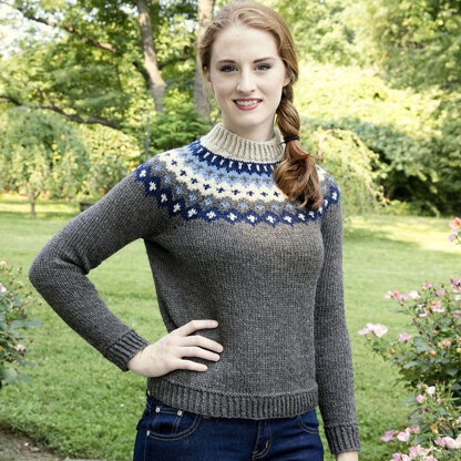 Plymouth Yarn Women’s Fairisle Yoke Pullover in Homestead is a cozy and warm sweater that is worked in the round from the bottom up to the yoke seamlessly. The body is then worked all together with the sleeves for the yoke. Plymouth Yarn Homestead is a 100% wool, worsted weight yarn in an excellent range of solid colors. Gently spun, Homestead has a bit of a rustic look with a soft, full texture. The Fairisle pattern is in chart form only.