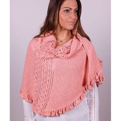 The cool drape of cotton and the heavenly softness of cashmere come together in this shawl from Plymouth Yarn. A ruffled edge and central lace panel accent the shawl's swath of stockinette stitch, showing off the crisp stitch definition of Cashmere de Cotone. This accessory is perfect for spring or fall evenings, when the full chill of winter as not yet arrived!