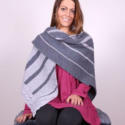 Wrap up in this big, cozy, contemporary Two Color Shawl from Plymouth! Knit from end to end in one piece with Tuscan Aire, this shawl will be a quick knit with a lace edging and graduated stripes.