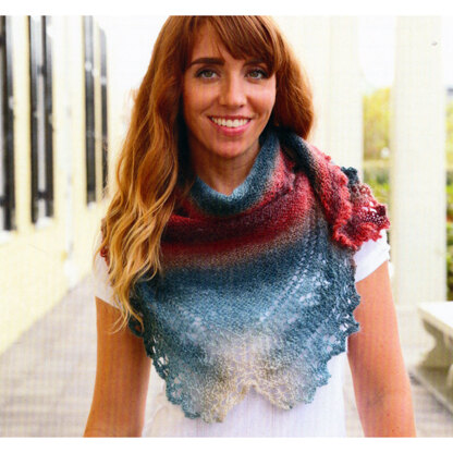 Self-striping Arya Ebruli makes the Lace Shawlette from Plymouth Yarn stunning and colorful! Add this gorgeous, lacy shawlette to your wardrobe for when you need to spice up your outfit. The border stitches have charts only.