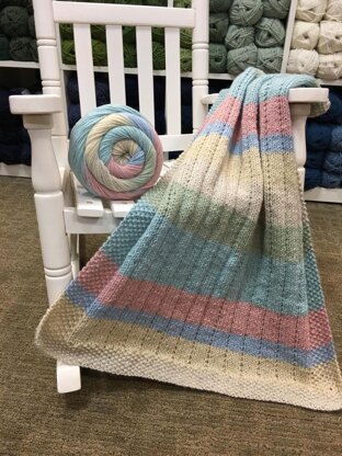 Plymouth Yarn Vertical Lines Baby Blanket is a wonderfully textured blanket for a quick baby shower gift. This cute and pastel colored blanket is knit in Plymouth Yarn Hot Cakes, an acrylic and wool blend worsted weight yarn. If you love Encore for baby knits, you will love Hot Cakes as all the color stripes are selected directly from the Encore line.