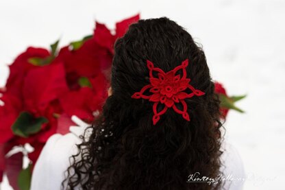 Crochet a pretty 3D poinsettia flower ornament with #10 thread for Christmas, or as a hair accessory.