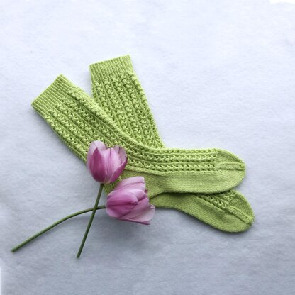 Put a little spring in your step with Primavera Lace Socks. This is a quick, easy knit that will go with all your spring outfits. They are lacy enough to be cool on those warm spring days yet warm enough for that occasional spring chill.
