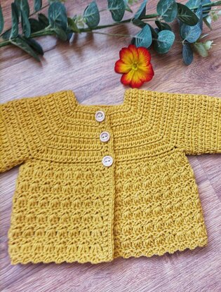 This Cardigan is worked in one piece starting from the top and working down, then joining to make the sleeves and edging. Each size is written separately and is suitable for advanced beginners.