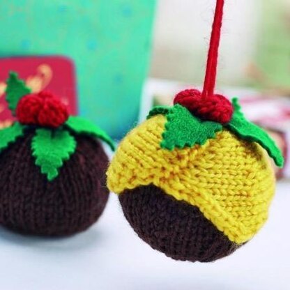 Knit some little Christmas Puddings to decorate your home this festive season. These puddings are great for stash busting as you only need small amounts of yarn. Knit a plain pudding, or add a yellow custard topping which is worked using short rows. The holly berries are knitted bobbles, and the leaves are cut from felt fabric. Designed by Amanda Berry @fluffandfuzz, the puddings are knitted in acrylic DK yarns on single pointed needles (not in the round). For confident beginners and above, other techniques used include casting on and off, knits, purls, increases and decreases, short rows, and seaming to finish.