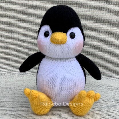 This sweet Pudgy Penguin is knit in the round, (Intermediate Level), using Magic Loop (or double pointed needles). He freely sits approx. 9” high, and is created using #3-light wt. (DK wt.) yarn and size 3 (3.25mm) 32” Circular Knitting Needles (if using Magic Loop). Approx. yardage: Black: 150 yds. (Red Heart Babyhugs Light-Ink) White: 105 yds. (Cygnet Kiddies Supersoft DK-White 208) Yellow: 50 yds. (Cygnet Kiddies Supersoft DK-Sunshine 184) • 14mm Safety Eyes (or embroidery thread/yarn) • Large-Eyed Blunt Needle & Long Straight Pins • Removable Stitch Markers & Ring Markers • Polyester Fiberfill Stuffing