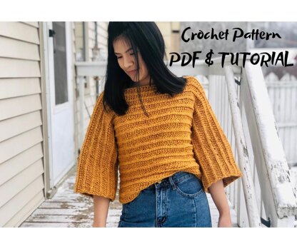 This crochet 3/4 sleeves sweater pattern is made in two panels, so it's simple and easy to make.