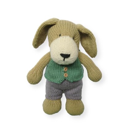 This cuddly puppy has an outfit of trousers and waistcoat; the clothes can be removed so you can play “dress up” with other toys. Designed by Amanda Berry @fluffandfuzz, the toys are knitted in DK yarns on single pointed needles (not in the round). For confident beginners and above, other techniques used include casting on and off, knits, purls, increases and decreases, short row shaping, and seaming to finish.