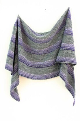 Purpleplexy is a half circle, slightly crescent shaped, large shawl. It has cascades of daisy stitches in the gradient colors separated by garter stitch. The main color is carried up the side and only 1 color is used at a time. Choose your favorite Miss Babs gradient and base color - a few are shown in the left column.
