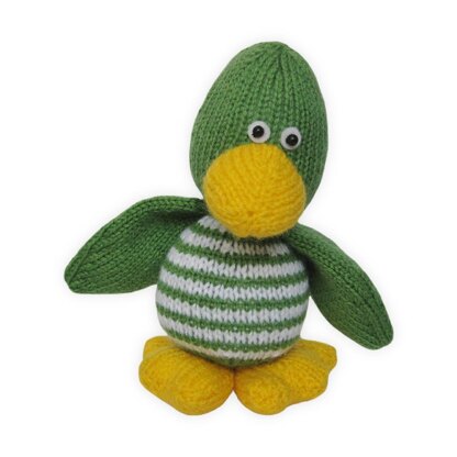 What do ducks eat with soup? ... Quackers! This little duck is worked mostly in stockinette, with increases and decreases for shaping and a striped body. Designed by Amanda Berry @fluffandfuzz, the duck is knitted in acrylic DK yarns on single pointed needles (not in the round). For confident beginners and above, other techniques used include casting on and off, knits, purls, increases and decreases, knitting stripes and seaming to finish.