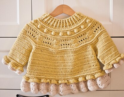 Ranunculus Sweater is worked top down and is completely seamless. It has a lot of texture, ruffles and bobbles. Works up really quickly and is fun to make. Looks great on little ones and on bigger girls too!