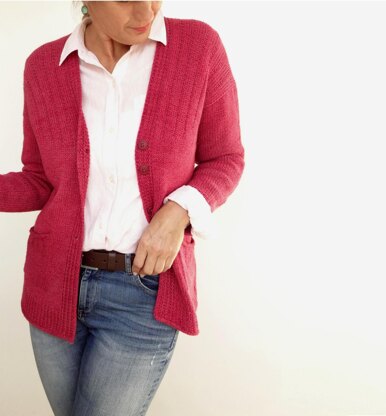 The r.e.d. cardigan is knitted from the top down with a simple pattern, that does not require too much attention. Relax. Loose fit and a modern shape with dropped shoulders make it a perfect layering piece. **Enjoy.**Choose from 3 shaping options to create the perfect cardigan for you. Delight yourself.
