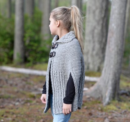 Designed with a positive ease of approx. 15-20 inches. Circumference measured with cape flat on a table along bottom after blocking. Pictured size 8/10 with a positive ease of approx. 15 inches around bottom edge.