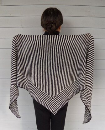Designed to show off beautiful long color transitions, this simple color work shawl looks equally beautiful when knit in solid colors.