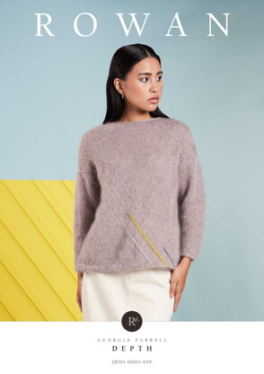 Rowan Depth from Abstract is a gorgeous classic women’s pullover featuring a boat neck, dropped shoulders knit in two strands of Kidsilk Haze throughout. The sweater is in stockinette stitch and garter stitch with diagonal chain stitch embroidery that runs from the hip to the shoulder across the front. Depth is knit flat in pieces from the bottom up and then seamed. Kidsilk Haze makes this fuzzy sweater a must-have piece in your essential wardrobe. The garter stitch and diagonal chain stitch pattern is in chart form only.