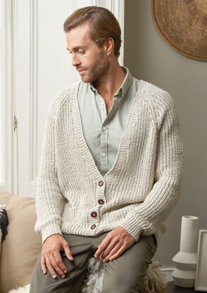 Rowan Bo from Union is an updated classic men’s cardigan knit in Denim Revive. This is one he’ll