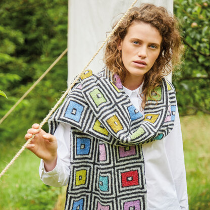 Fassett’s Felted Tweed Collection is a multicolored pillow cover knit