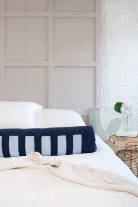 Rowan Lily from Bloom 3 is a must-have cylinder-shaped support pillow to help you or the expecting mom get comfortable. The cushion cover is worked in Cotton Wool in a garter stitch with fabulous graphic intarsia color blocks. Cotton Wool by Rowan is a lovely and lightweight DK yarn. It comes in a variety of neutral and muted colors, perfect for modern knitting.