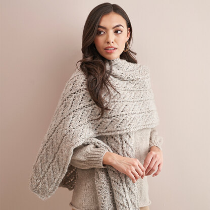 a modern update knit in Brushed Fleece. This wrap is wonderfully warm yet light