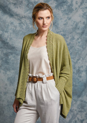 Yarn Requirements: 16 (17, 19, 20, 21) balls Rowan Denim Revive (95% Cotton/5% Other; 50g/109yds) shown in 219 Pistachio