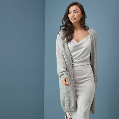Alpaca Classic and Alpaca Soft DK held together. The cardigan is knit flat in pieces from the bottom up and then seamed. Alpaca