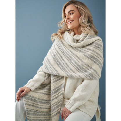 at Rowan: Collection Three, is a lovely diagonal striped accessory perfect as an extra layering piece to wrap around your shoulders to keep warm