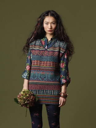 Taking full advantage of Rowan Felted Tweed’s rich color palette, Anastasiya is an intricate intarsia vest with v-neck and garter and rib details. This women's vest is knit in two pieces from the bottom up and seamed. Anastasiya is a colourful and welcome addition to any outfit. Note: Colorwork pattern is charted only.