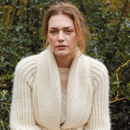 Rowan Breeze is a super long, super squishy fisherman’s rib cardigan perfect for cool weather. Designed by Lisa Richardson, this women’s sweater is knit in pieces from the bottom up and seamed and features raglan sleeves, a belt, pockets, and a big collar. Breeze is knit in Rowan Island Blend held together with either Kidsilk Haze or Cashmere Haze for a luxuriously warm garment with a beautiful halo.