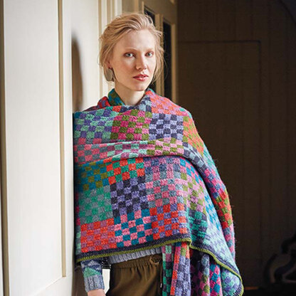 Rowan Checkerboard from Kaffe’s Colours is a knitting pattern for a fabulous blanket or an oversized wrap that will keep you warm and cozy using Felted Tweed. This pattern uses both intarsia and Fair Isle techniques in creating this stunning piece. Rowan Felted Tweed is a luxurious blend of Merino wool, alpaca, and rayon, available in a delightful array of heathered shades. Felted Tweed is also an excellent choice for any pattern calling for a DK weight—from Fair Isle to cables; you will be pleased with the results. The Intarsia/Fair Isle pattern is in chart form only.