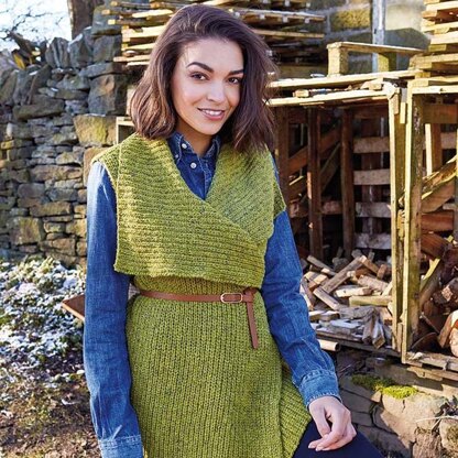 Rowan Elmtree from Around Holme is a sleeveless cardigan knitted in rib, with a loose collar. This knitting pattern is suitable for the more experienced knitter. Knit in Rowan Felted Tweed is a luxurious blend available in a delightful array of heathered shades. Featured in numerous patterns from Rowan. Felted Tweed is also a great choice for any pattern calling for a DK weight — from Fair Isle to cables; you will be pleased with the results.