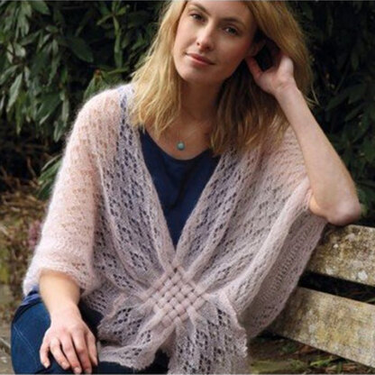 Using our ever popular yarn Kidsilk Haze (mohair and silk), this stunning lace shawl is held together by interlocking ‘fingers’ which are woven together. Mayvala is a show stopper and will be a topic of conversation.